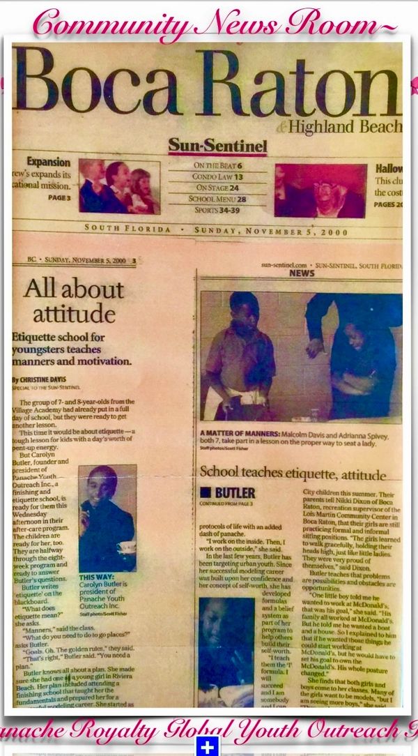 The history of Panache Royalty Global Youth Outreach Inc. & Creating Beauty Inc. Now Panache Royalty Billions Globally Inc. Started Out As A Finishing Etiquette~ Development~ Outreach In Dallas Texas & Has Been Investing & Planting Seeds To Educate~ Enrich & Empower The Lives Of Youth Since 1987 making it possible for youth to experience the essential qualities of life to becoming whole, complete & successful. qualities of life to become whole, complete & successful...